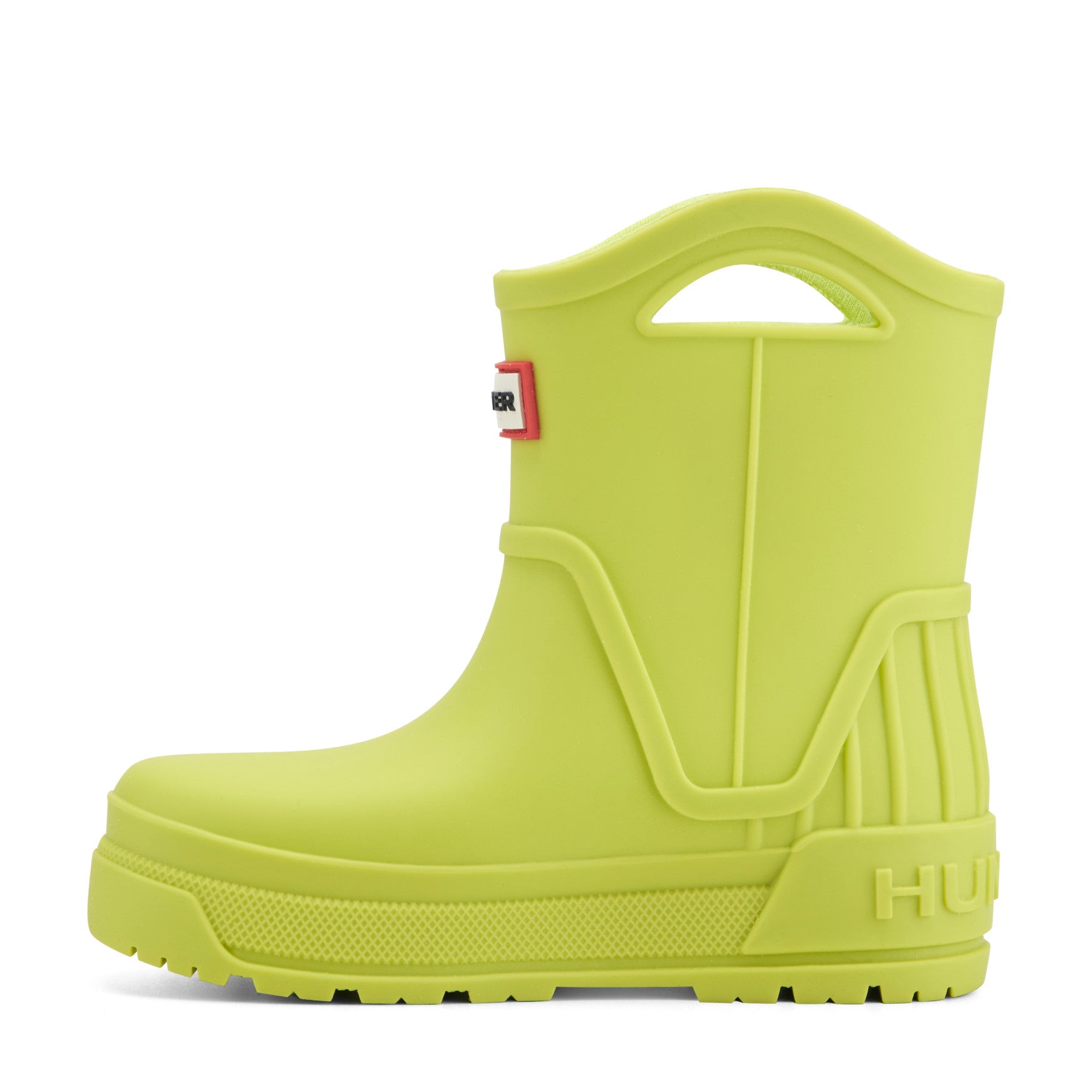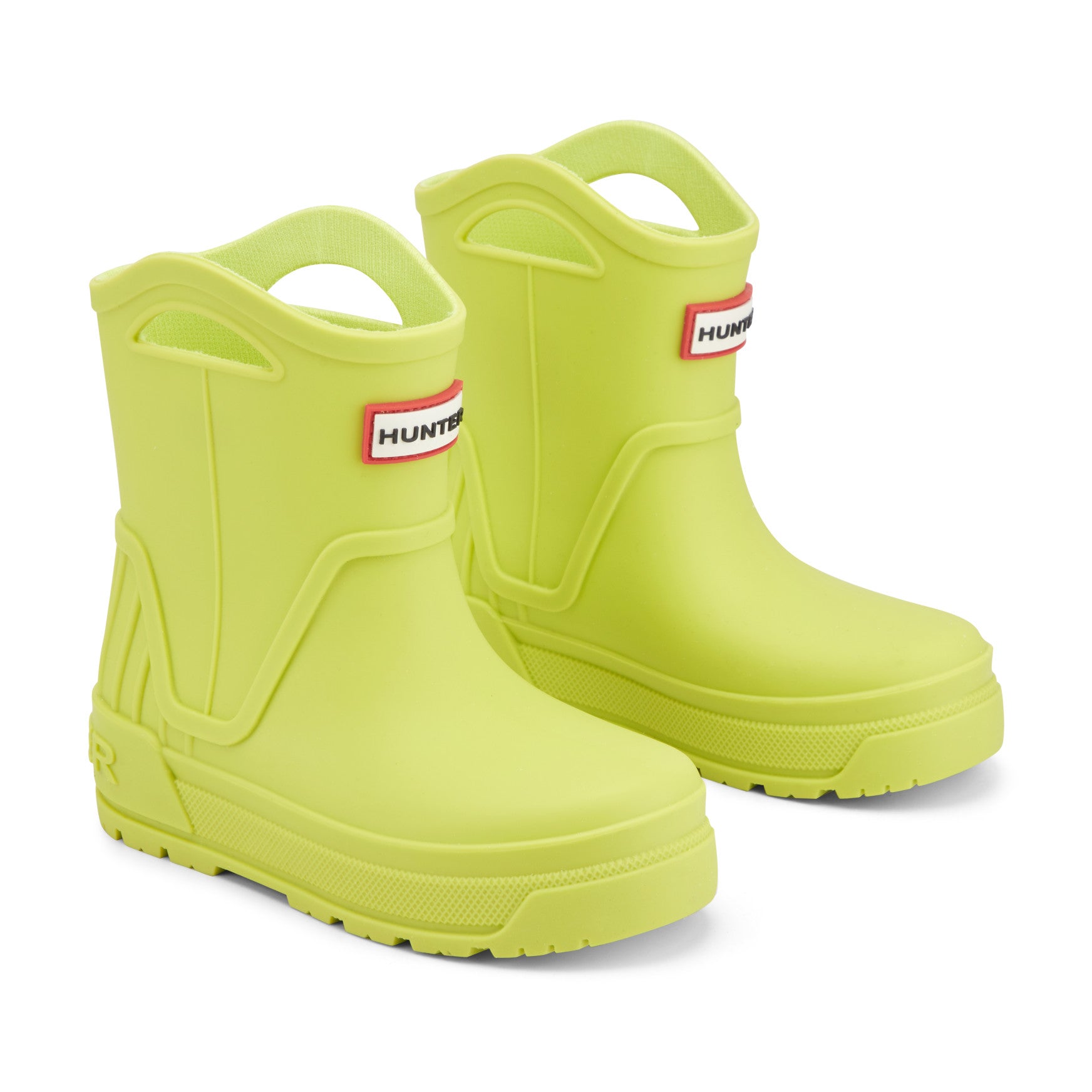 The Georgey is waterproof and built for every little adventure the rain brings. This mid-shaft boot features raised detailing across the upper, an embossed Hunter logo at the heel, and built-in pull-on handles that let kids gear up on their own. A molded footbed provides supportive all-day comfort, while the lightweight construction and easy-clean finish keep things simple for parents. A textured outsole with a grip-friendly tread pattern adds sure-footed confidence on wet ground.