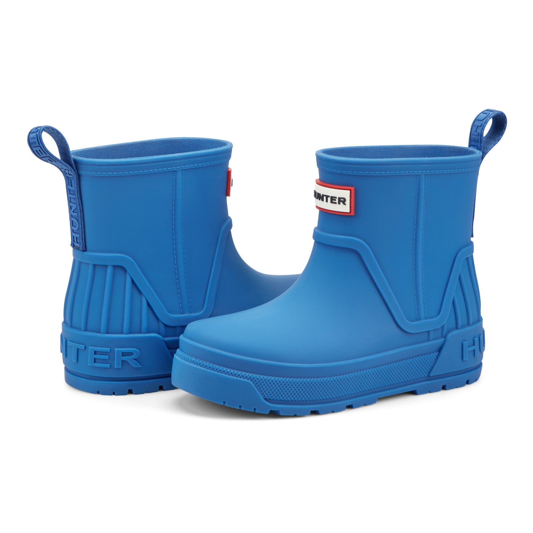 The Grace is a waterproof rain boot built for big kids who jump in with both feet. A low-profile mid-shaft silhouette keeps things lightweight and easy to pull on, with a branded rear pull tab that lets kids gear up independently. The chunky lugged outsole provides reliable grip across wet pavements and muddy trails, while the cushioned footbed keeps every step comfortable through long days of exploration. Raised Hunter branding at the heel adds a bold signature detail. Available in both matte and glossy finishes, this is the boot that makes rainy days something to look forward to.