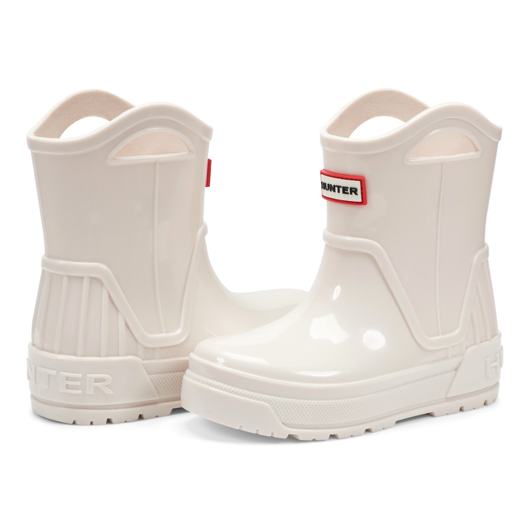 The Georgey is waterproof and built for every little adventure the rain brings. This mid-shaft boot features raised detailing across the upper, an embossed Hunter logo at the heel, and built-in pull-on handles that let kids gear up on their own. A molded footbed provides supportive all-day comfort, while the lightweight construction and easy-clean finish keep things simple for parents. A textured outsole with a grip-friendly tread pattern adds sure-footed confidence on wet ground.