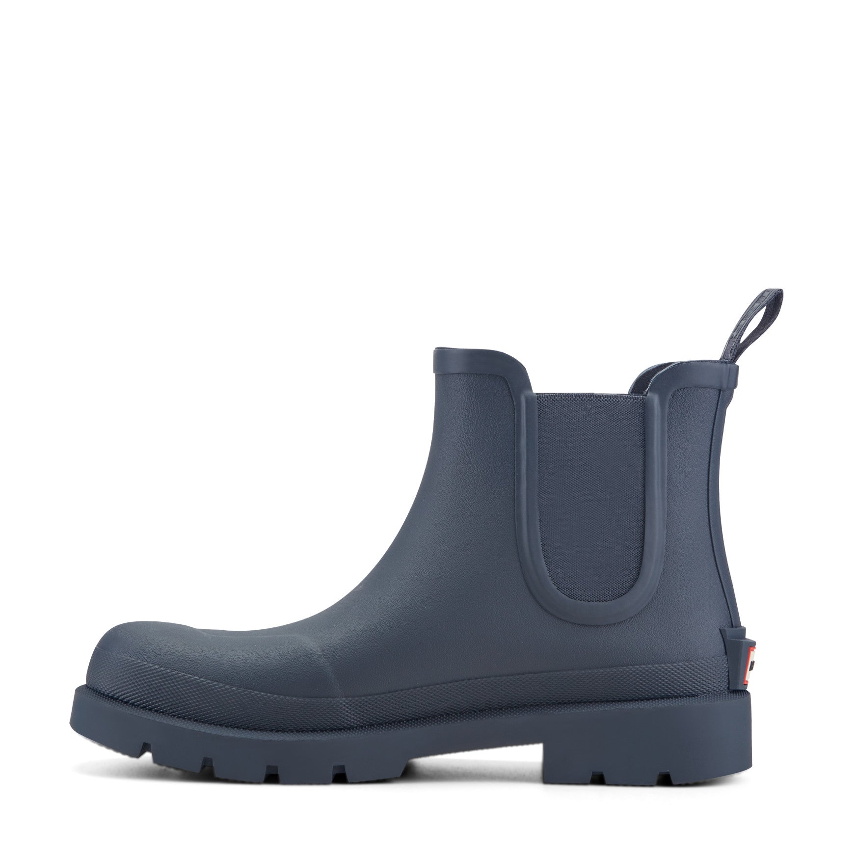 Waterproof protection comes standard with the Orford, a men's Chelsea boot built to take on rain, mud, and everything between. The matte rubber upper keeps feet completely dry, while elastic side gussets and a branded pull tab make for quick entry. A sturdy kick plate at the back heel lets you lever the boot off hands-free. Underneath, a chunky lugged outsole with deep-cut tread grips confidently across wet pavements and uneven ground, and a cushioned footbed keeps comfort consistent from first step to last.