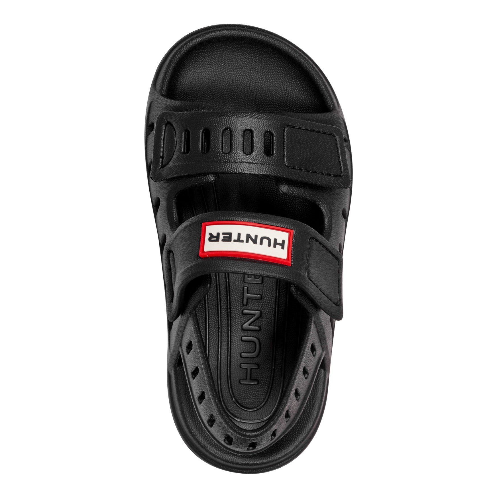 Every sunny outing deserves a sandal that's as ready to play as they are. The Dottie features a lightweight, one-piece molded construction with perforated cutout detailing across the straps and slingback for breathability on warm days. Two adjustable hook-and-loop straps and the signature Hunter logo badge make it easy for little ones to gear up on their own. A chunky, scalloped outsole adds sure-footed grip on wet pool decks and sandy paths, while the contoured footbed keeps small feet cushioned through every exploration. Easy to clean and quick to dry, this is the sandal built for wherever the day leads.