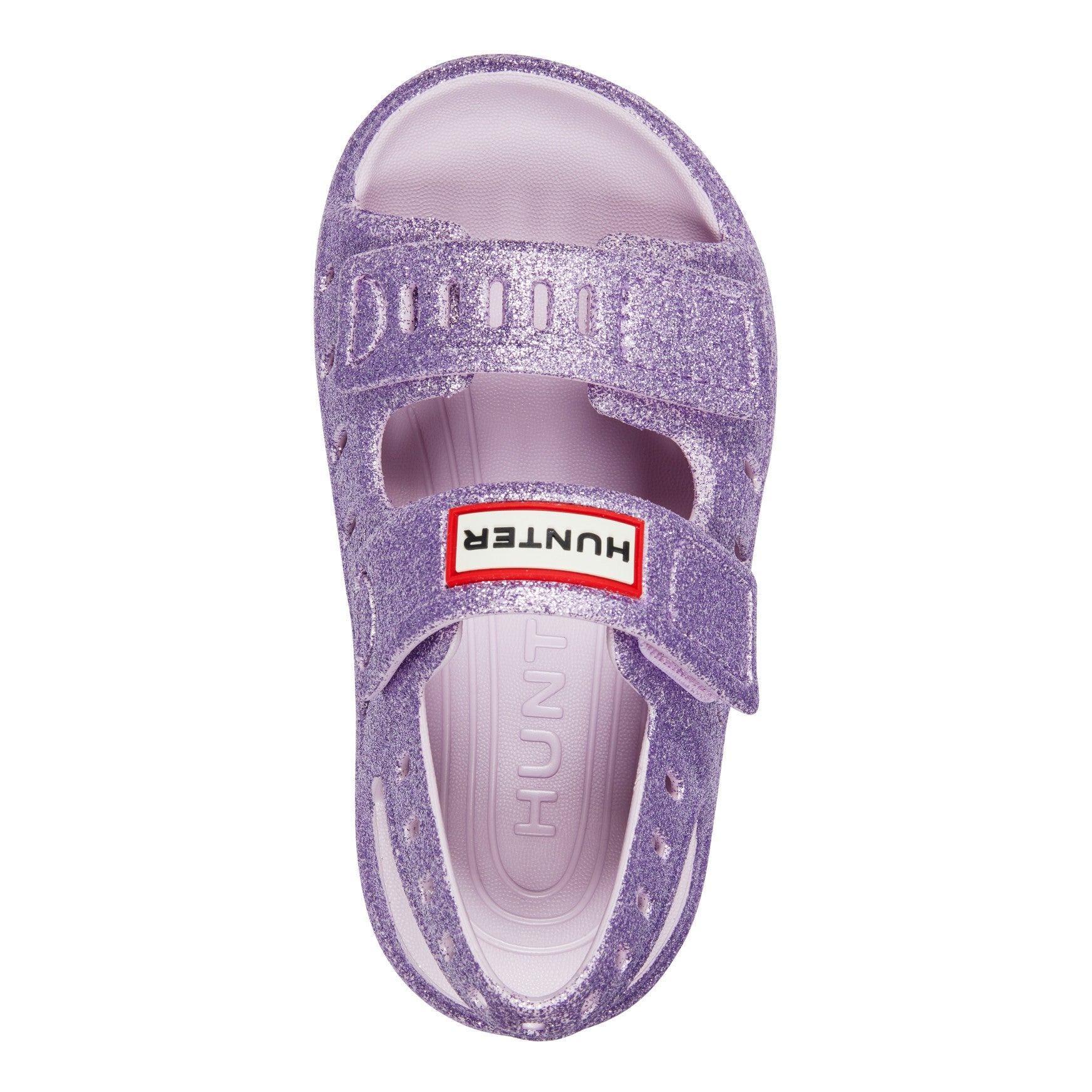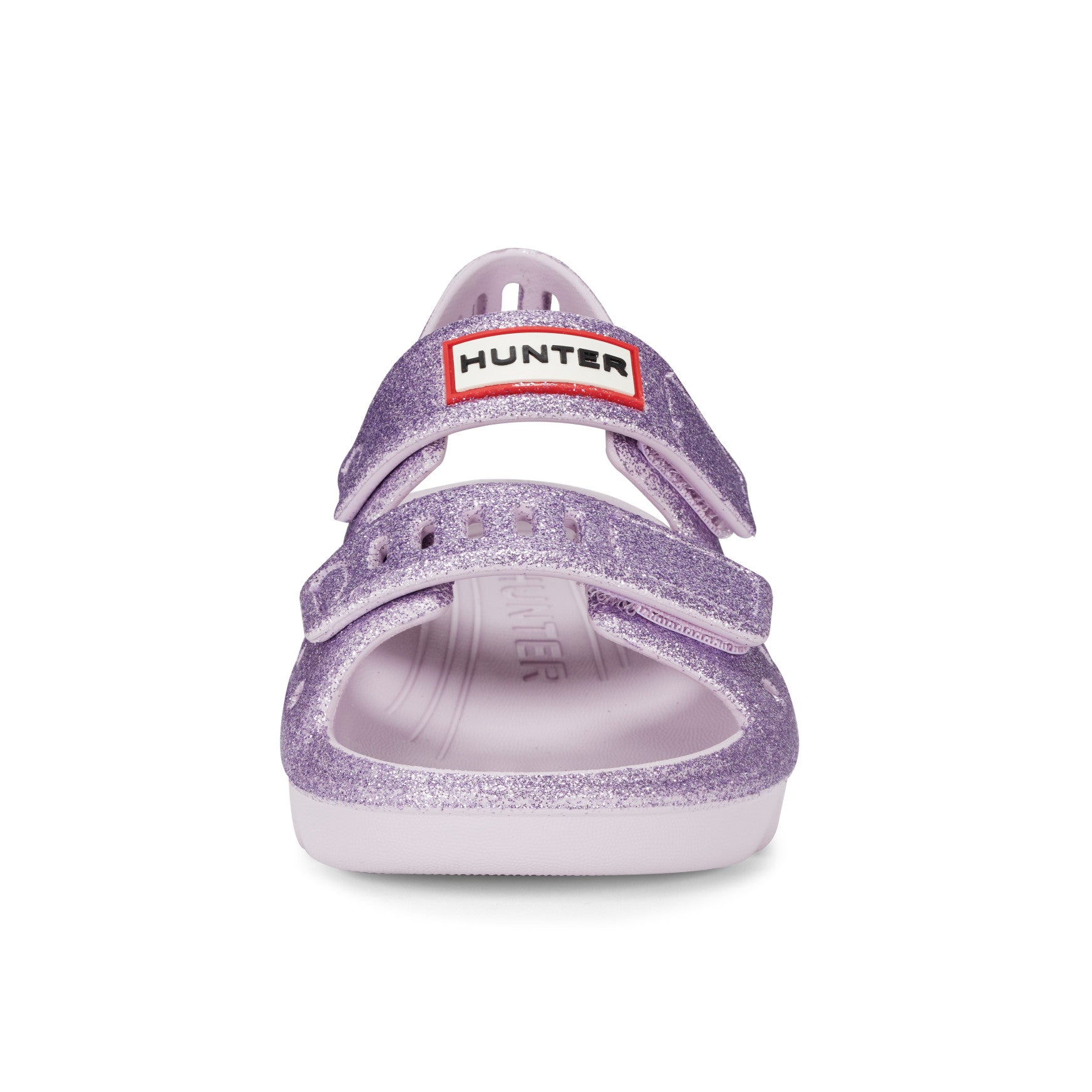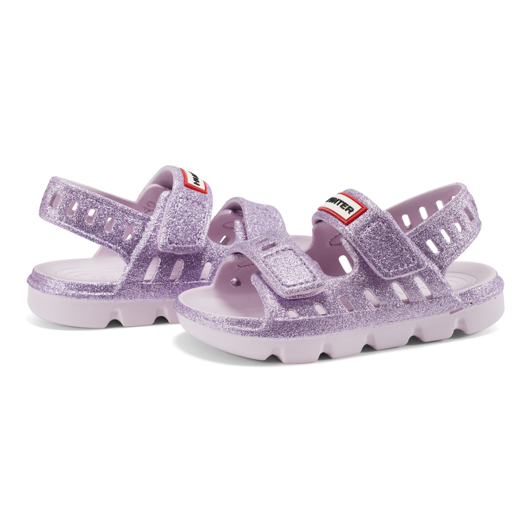 Every sunny outing deserves a sandal that's as ready to play as they are. The Dottie features a lightweight, one-piece molded construction with perforated cutout detailing across the straps and slingback for breathability on warm days. Two adjustable hook-and-loop straps and the signature Hunter logo badge make it easy for little ones to gear up on their own. A chunky, scalloped outsole adds sure-footed grip on wet pool decks and sandy paths, while the contoured footbed keeps small feet cushioned through every exploration. Easy to clean and quick to dry, this is the sandal built for wherever the day leads.