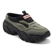 The Darisa is a slip-on casual shoe with a bold, exaggerated outsole that brings confident proportion to an easy, pull-on silhouette. Quilted panelling wraps the upper with a padded, sculptural shape, while open mesh inserts at the tongue add breathability for warmer days. A rear pull tab branded with the iconic Hunter logo makes getting in and out effortless. The chunky, wave-form outsole delivers sure-footed grip underfoot, grounding a design that moves seamlessly from city streets to coastal paths.