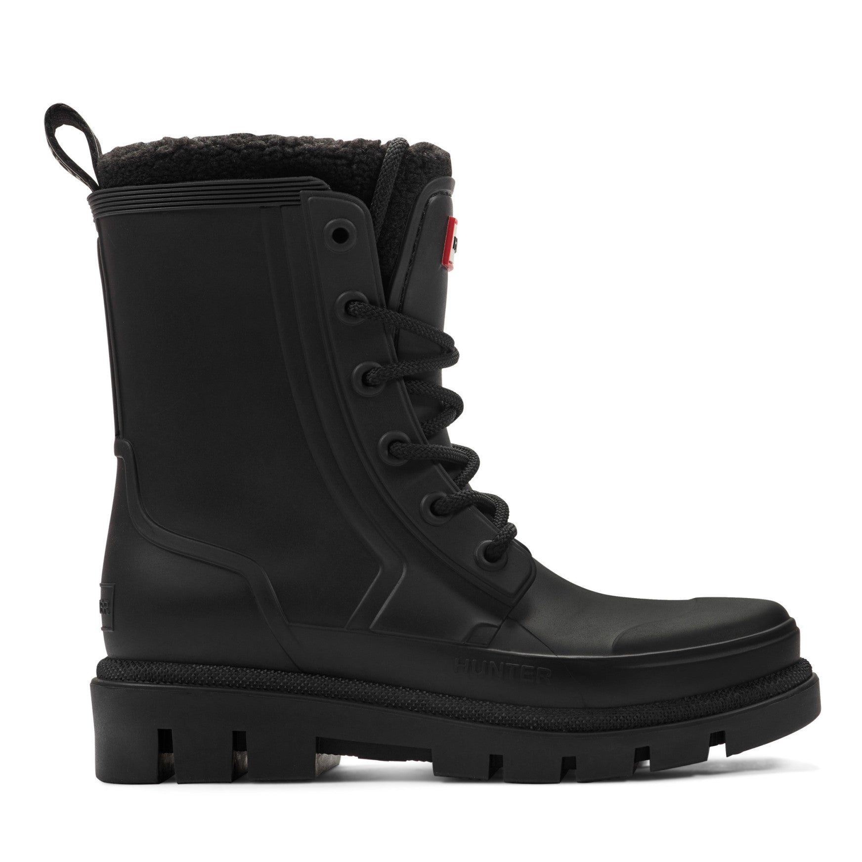 The Diana Insulated is a waterproof lace-up bootie with a cozy fleece lining that keeps cold days feeling effortless. A smooth matte upper seals out rain and slush while plush insulation peeks above the mid-shaft collar, locking in warmth. Thick rope laces thread through reinforced eyelets for a secure, adjustable fit, and a branded pull tab at the back makes entry easy. A cushioned footbed delivers all-day comfort underfoot, while the chunky lugged outsole grips wet pavements and uneven terrain with confidence.