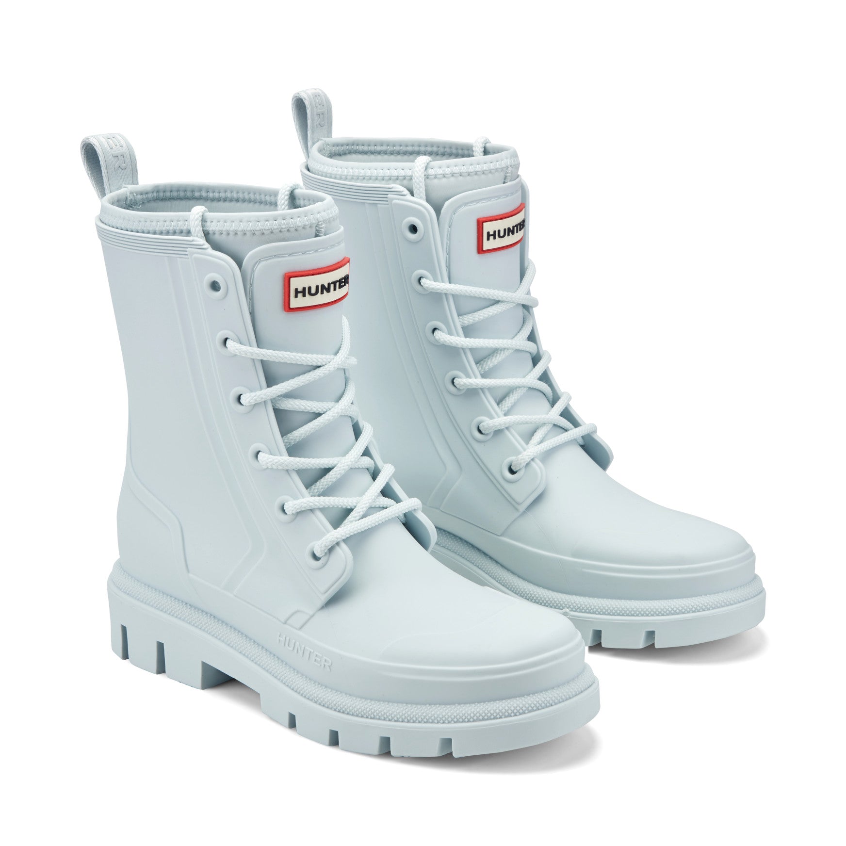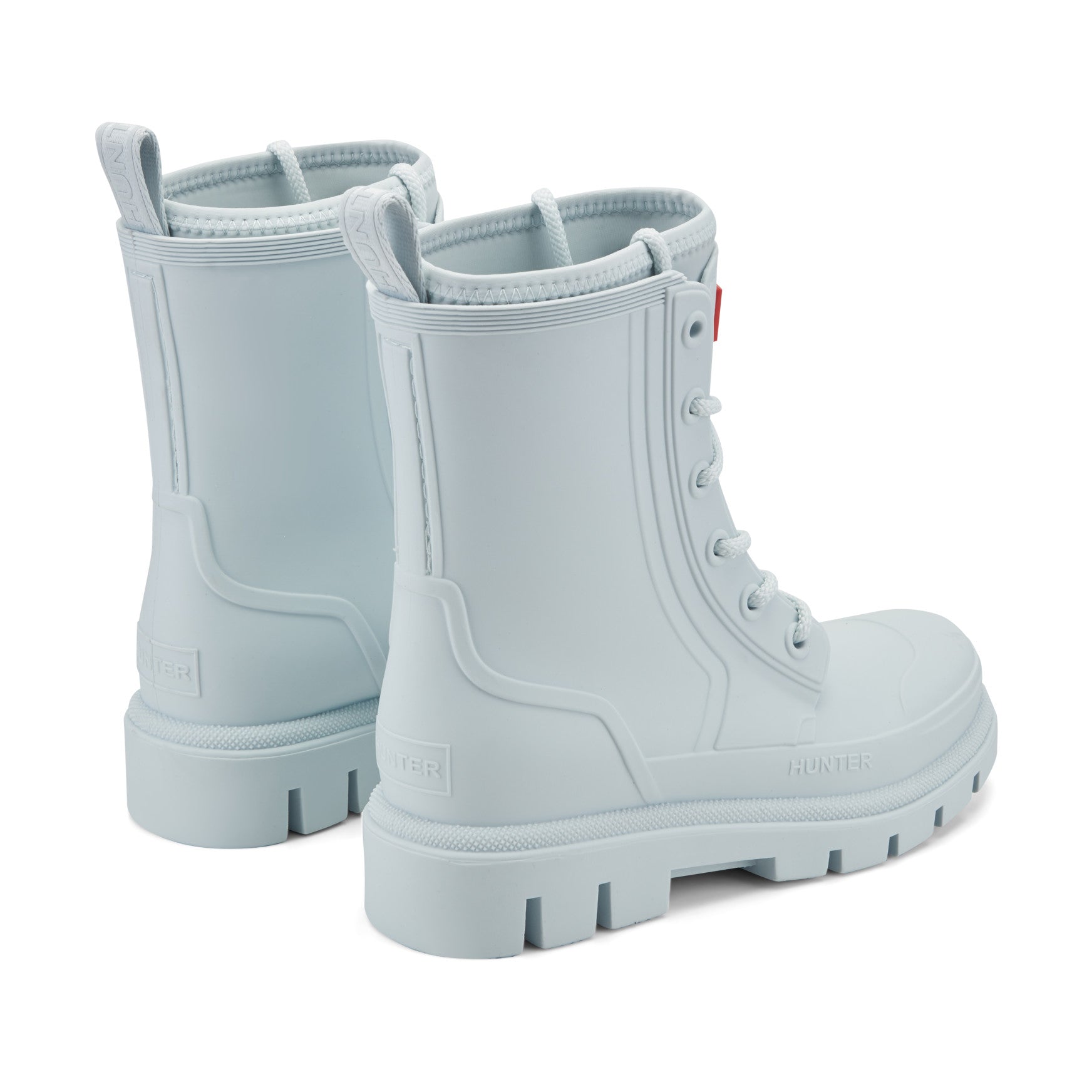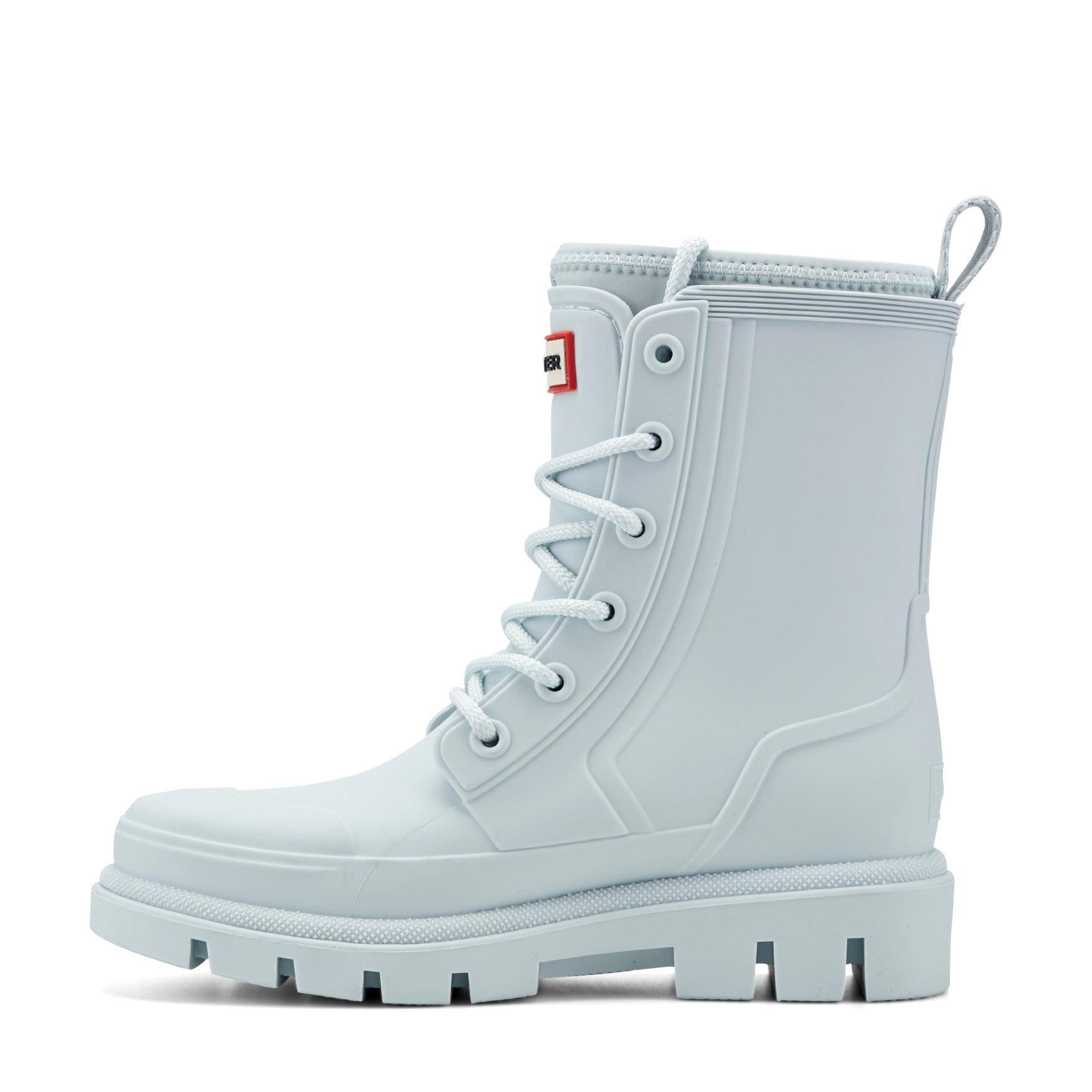 Waterproof and fashion-forward, the Diana is a mid-shaft lace-up rain boot built to seal out spring's most unpredictable downpours. Chunky rope laces thread through reinforced eyelets across a smooth, matte injected upper with sculpted panel detailing, giving you a fully adjustable fit. Inside, the footbed features a comfort molded foam insert, perforated for breathability. A padded collar sits snug at the top of the shaft, and a branded pull tab at the back makes getting in and out effortless. Underfoot, a deep-lugged outsole delivers sure-footed traction on wet pavements and rain-soaked paths alike.
