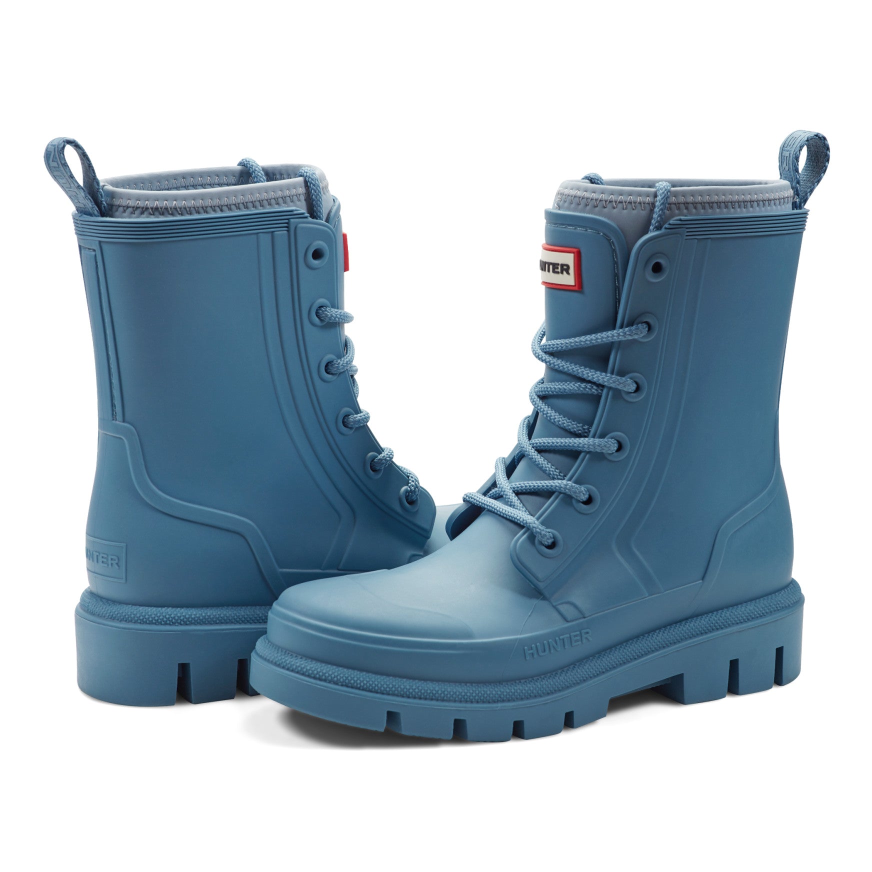 Waterproof and fashion-forward, the Diana is a mid-shaft lace-up rain boot built to seal out spring's most unpredictable downpours. Chunky rope laces thread through reinforced eyelets across a smooth, matte injected upper with sculpted panel detailing, giving you a fully adjustable fit. Inside, the footbed features a comfort molded foam insert, perforated for breathability. A padded collar sits snug at the top of the shaft, and a branded pull tab at the back makes getting in and out effortless. Underfoot, a deep-lugged outsole delivers sure-footed traction on wet pavements and rain-soaked paths alike.