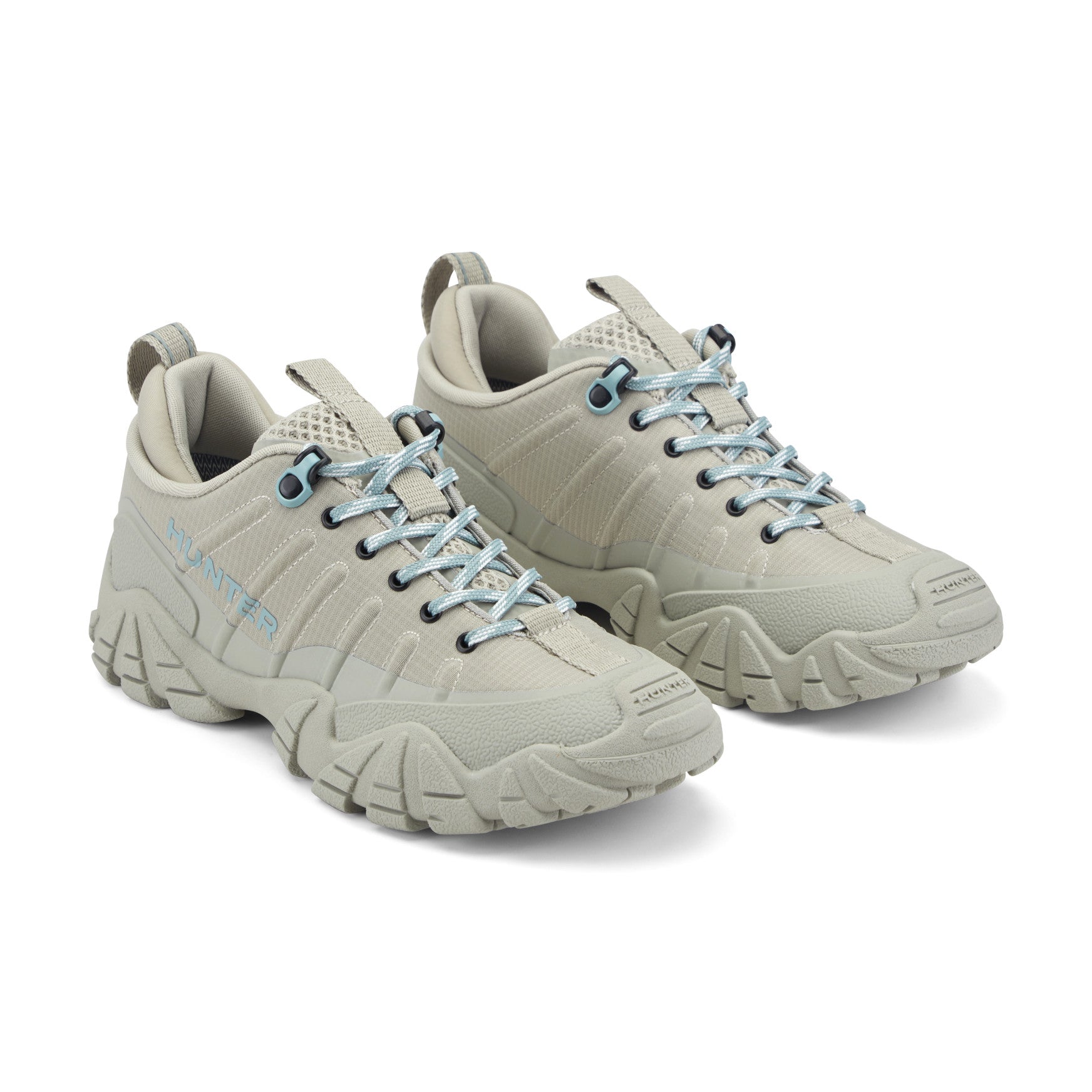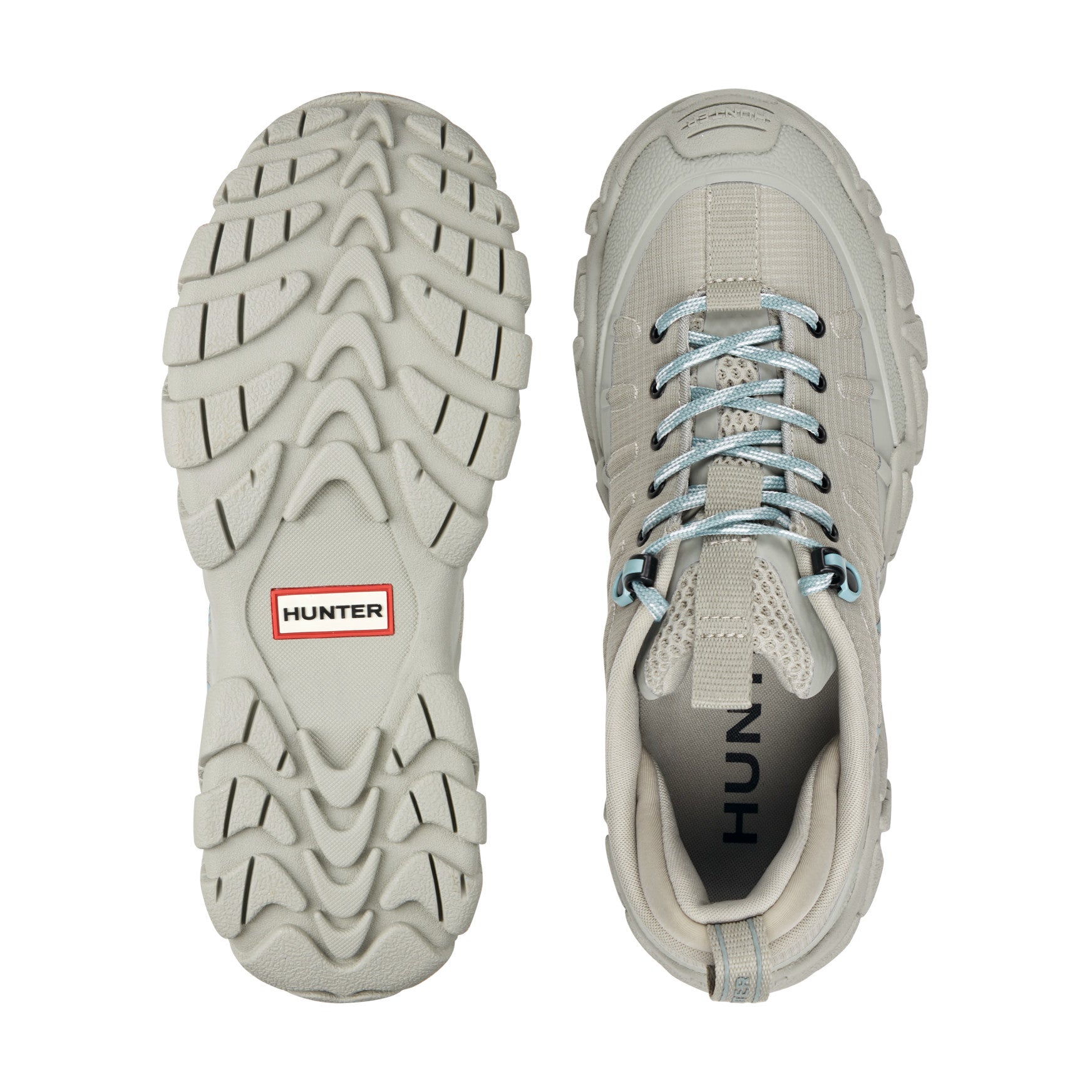The Sara is a waterproof lace-up sneaker that keeps you dry and moving through whatever the forecast brings. A sculpted, chunky outsole with deep lugged tread delivers sure-footed grip across wet pavements and uneven paths, while a padded collar and mesh tongue panel add breathability where it counts. Contrast eyelets and a bungee-style lace closure let you dial in the fit on the go. Hunter's comfort footbed provides lightweight cushioning underfoot, and a pull-on heel tab makes for easy entry. Bold Hunter branding along the midsole finishes a sneaker built for everyday exploration.