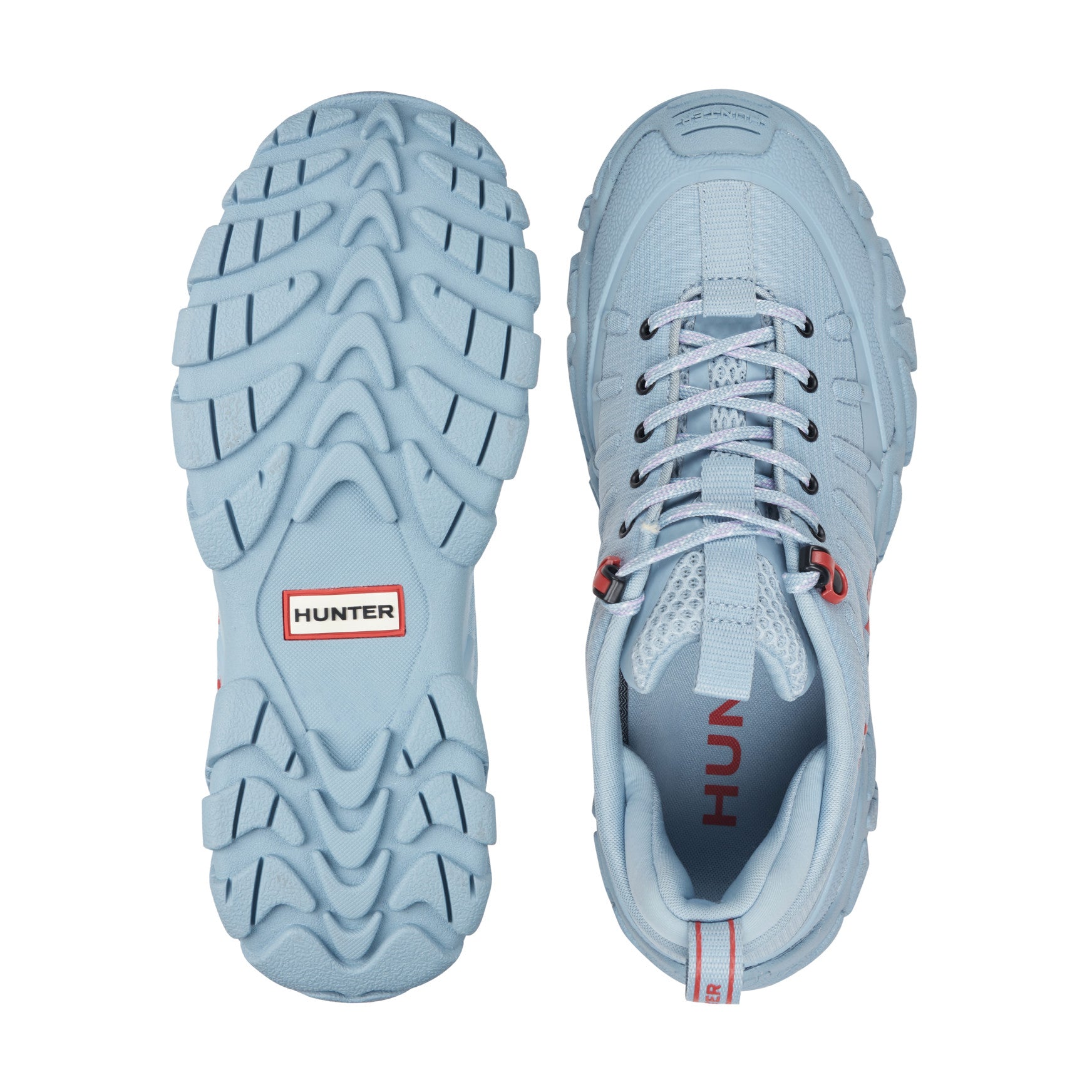 The Sara is a waterproof lace-up sneaker that keeps you dry and moving through whatever the forecast brings. A sculpted, chunky outsole with deep lugged tread delivers sure-footed grip across wet pavements and uneven paths, while a padded collar and mesh tongue panel add breathability where it counts. Contrast eyelets and a bungee-style lace closure let you dial in the fit on the go. Hunter's comfort footbed provides lightweight cushioning underfoot, and a pull-on heel tab makes for easy entry. Bold Hunter branding along the midsole finishes a sneaker built for everyday exploration.
