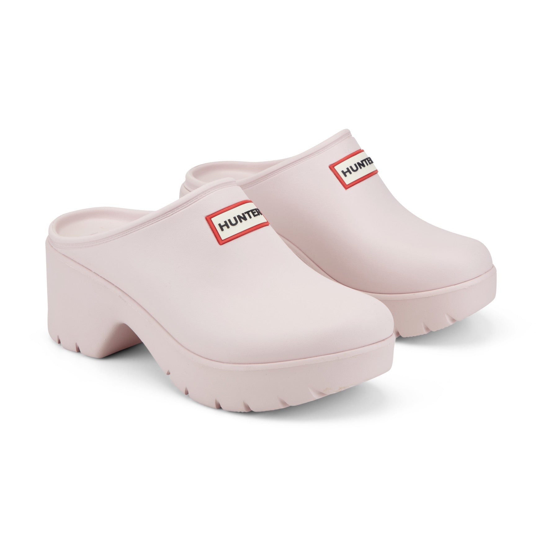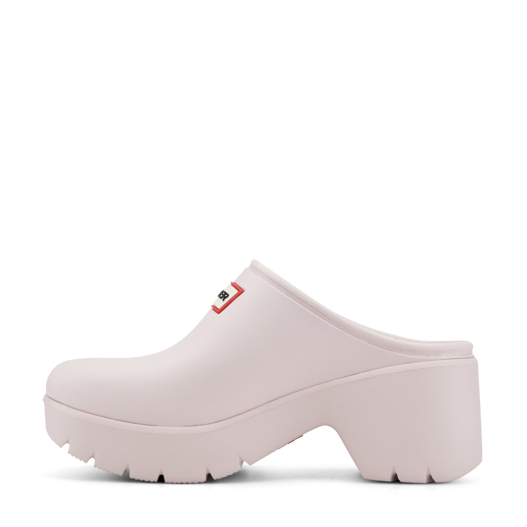 The Anika clog brings a confident, sculptural silhouette to the season with its smooth matte finish and chunky block heel. Water friendly and easy to clean, this lightweight slip-on is built entirely from a single molded piece with a built-in cushioned footbed for plush, all-day comfort underfoot. A signature chained top trim echoes the detailing found on Hunter's iconic Original boots, while the rounded toe and raised platform keep the proportions bold and modern. The toothed outsole adds sure-footed grip on wet or dry surfaces, ready for wherever the day leads.