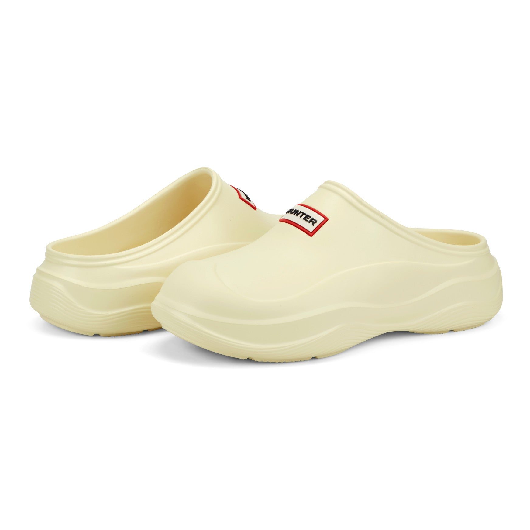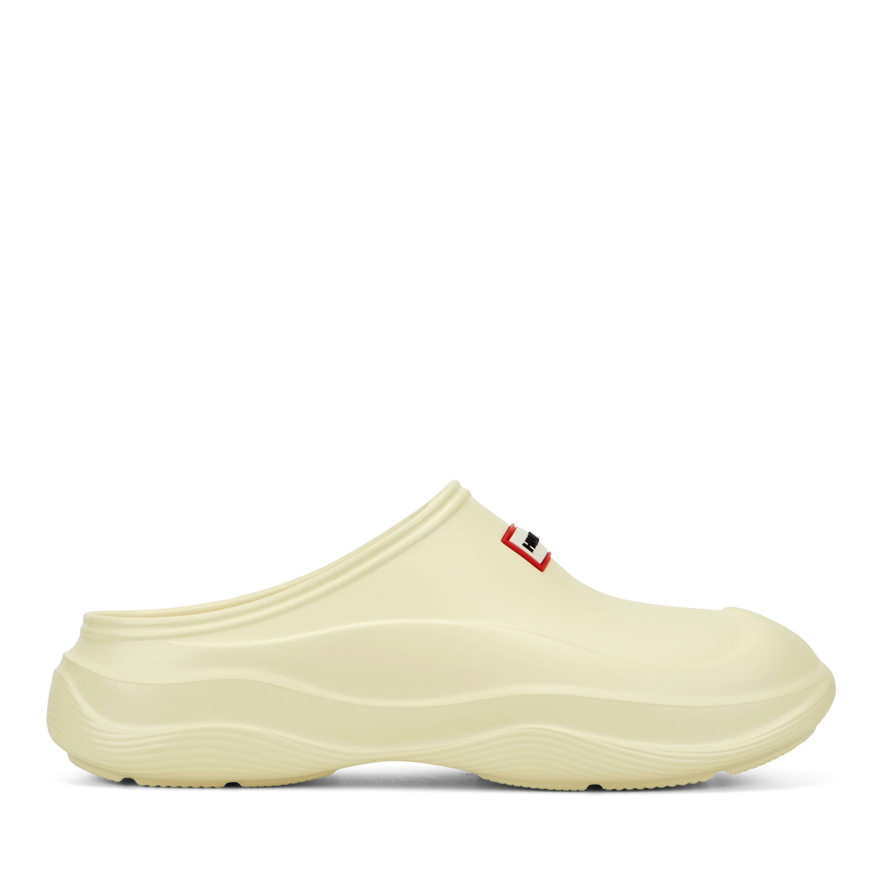 The Elana clog brings a sculpted, modern silhouette to your everyday rotation, with water-resistant construction that shrugs off unexpected showers. Molded from a single lightweight piece, the rounded toe and wave-detailed sole give it a soft, purposeful shape that feels as considered as it looks. A cushioned footbed delivers cloud-like underfoot comfort from the first step, while the slip-on design means you're out the door without a second thought. Finished with the signature Hunter logo at the vamp, it's effortless style built for the world outside.