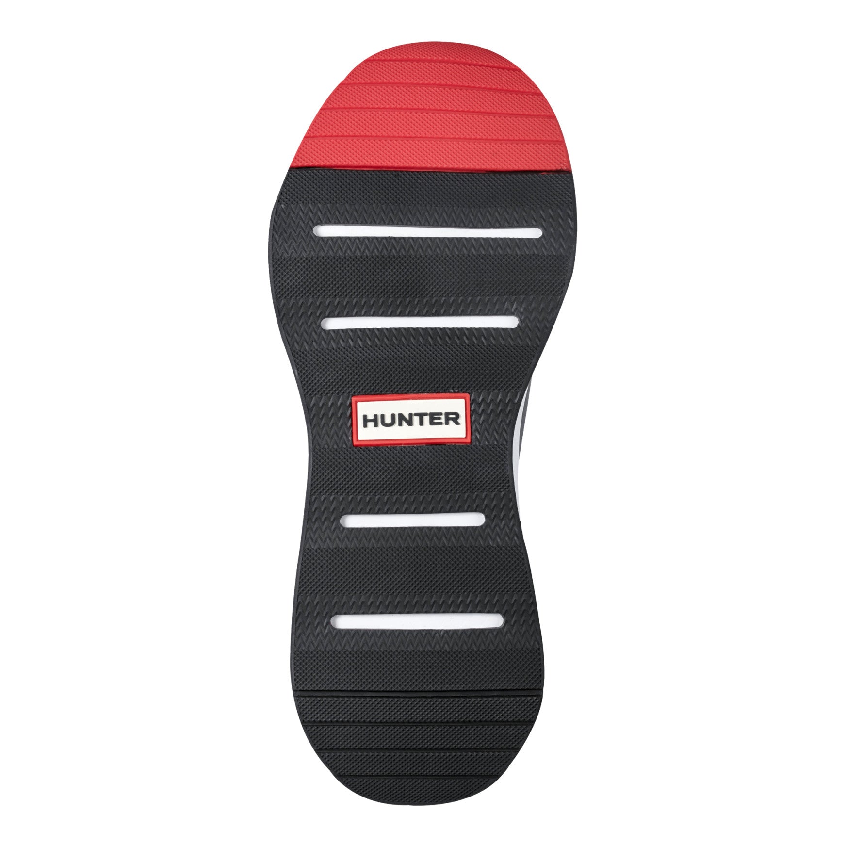 Water resistant and built with quick-dry materials, the Ginny is a lace-up sneaker that keeps you moving confidently through unpredictable weather. Its breathable mesh upper is layered with smooth overlays and accented by a bold Hunter tongue tab, giving it a sporty silhouette with real presence. A sculpted, wave-profile midsole delivers lightweight cushioning underfoot, while the chunky outsole with cutout detailing adds sure-footed grip to every stride. Contrast laces and a padded collar finish the look with comfort that lasts from city streets to coastal paths.