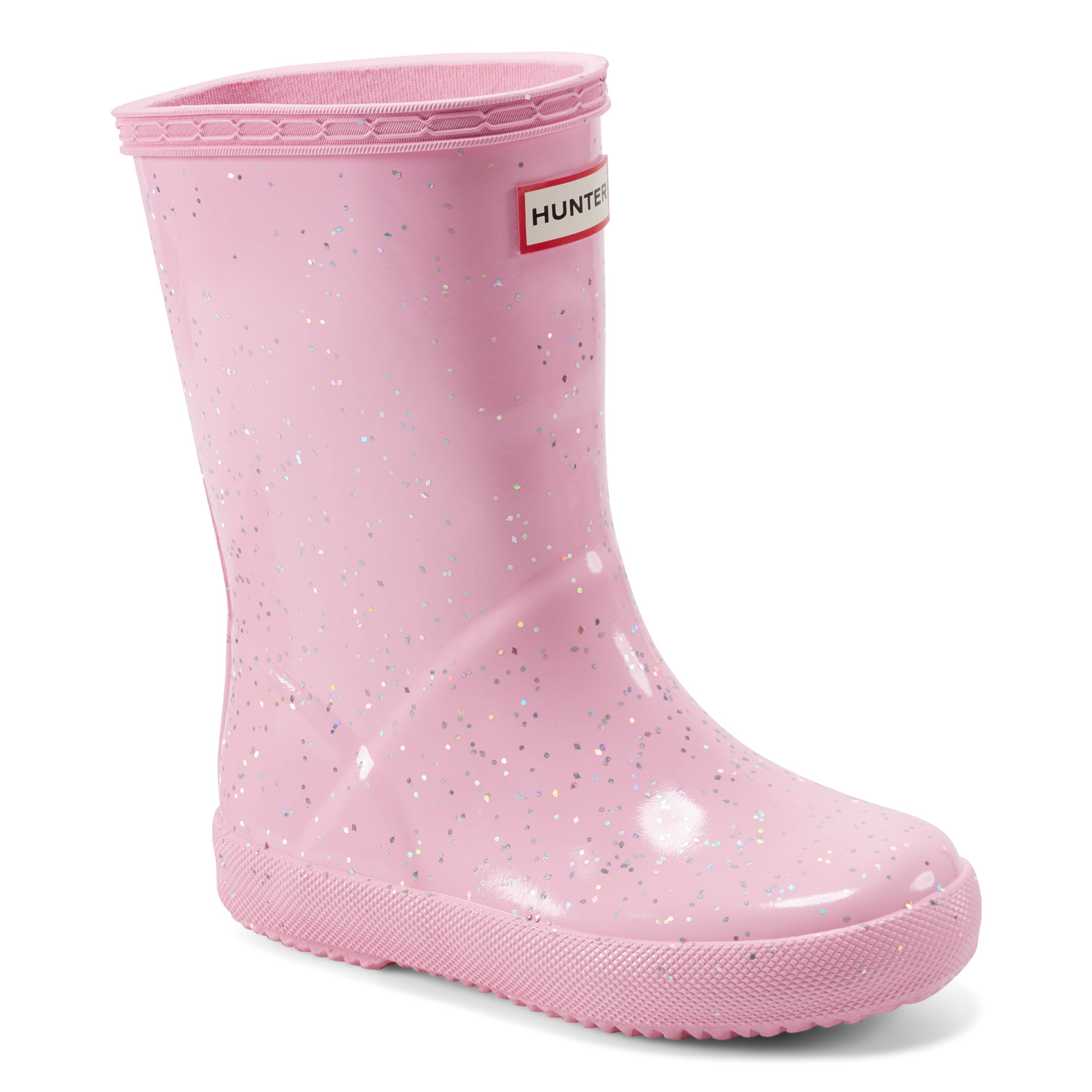 Featuring a glitter finish, this kids boot is perfect for puddle splashing. Handcrafted from natural rubber, these fully waterproof boots have a flat outsole for stability and a rounded toe gives little toes room to move. Similar to the adults Original Boots, the specially developed tread on the calendered outsole reduces slipping and the soft recycled polyester lining ensures comfort. Little feet will be protected on any adventure, rain or shine.